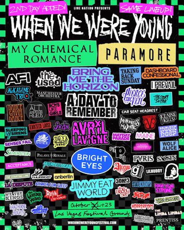 First announced in early 2022, the When We Were Young Festival sounded too good to be true for fans of the emo genre. A weekend (later expanded to two) festival in Las Vegas with a bill that included MCR, Paramore, Bright Eyes, AFI, the Used, Bring Me The Horizon, Boys Like Girls, Avril Lavigne, Taking Back Sunday, Dashboard Confessional, We the Kings, Alkaline Trio, Manchester Orchestra, Dance Gavin Dance, the All-American Rejects, Anberlin, 3OH!3, Atreyu, the Ready Set, Jimmy Eat World, La Dispute, the Wonder Years, Hawthorne Heights, Car Seat Headrest, Wolf Alice, and many others was too much for many fans, who feared the event would be a major disaster like the ill-fated Fyre Festival. However, while the first day of the festival needed to be cancelled due to dangerous winds, the second day went off to rave reviews, and the second weekend looked set to do the same.